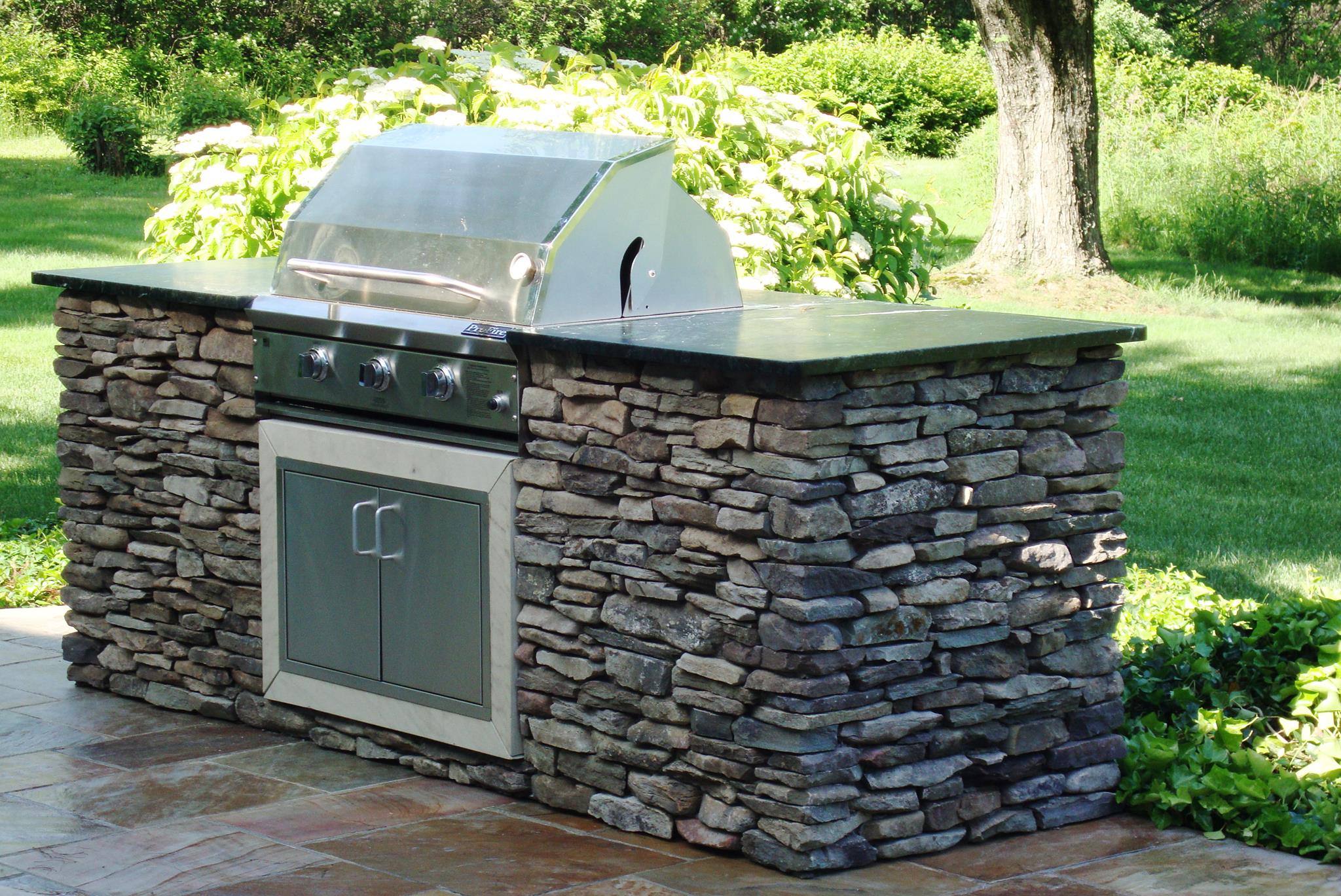 Aesthetically, a stone front house or chimney of stone makes a striking accent. A patio and/or walkway of stone can be formal or casual, manicured or interspersed with trailing herbs; a retaining wall can be a surround for a flowerbed or a snaking four-foot-high wall. Boulders of many different sizes can accent a drive or flowerbed. The look the homeowner wants can be achieved with stone in a variety of ways.